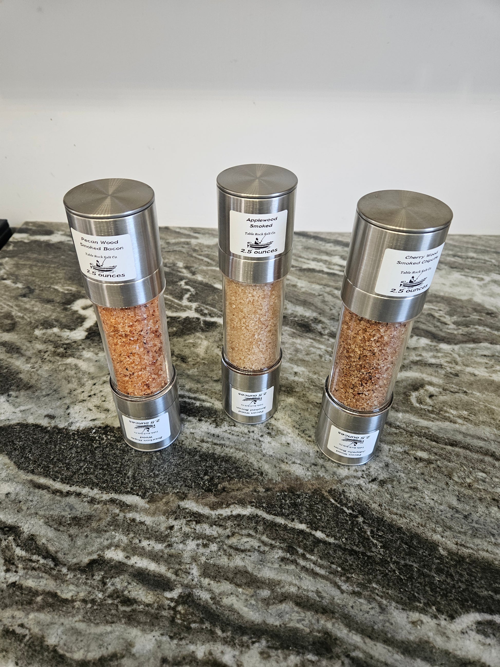 The grinder is reusable, with both sides being adjustable to grind the salt to your size preference.